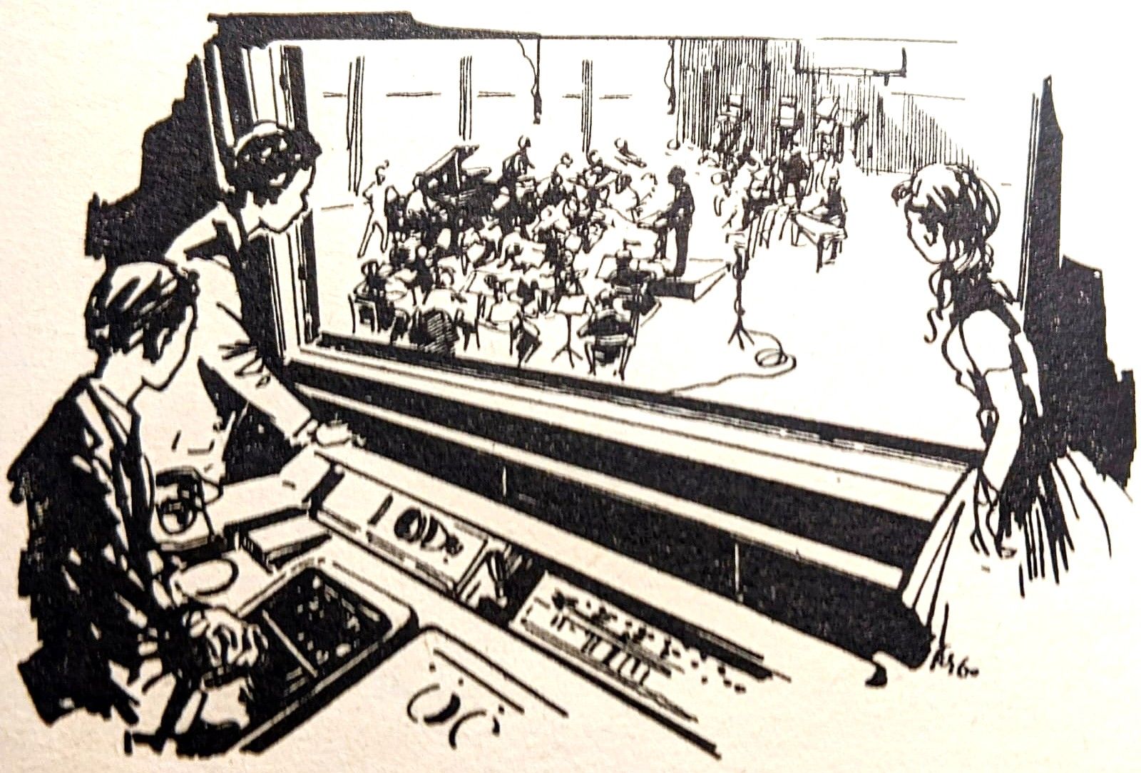 Begleitet werden die Texte von Bildskizzen des Grafikers Hans-Hermann Schlicker, die Arbeitsabläufe, technische Situationen und atmosphärische Momente des Rundfunks visuell verdichten. Sie stehen nicht illustrativ neben dem Text, sondern wirken wie eigenständige Kommentare zu einer Medienpraxis, die heute weitgehend verschwunden ist.