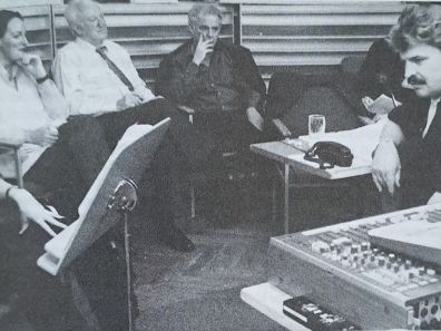 Radio DDR - später Radio Aktuell: "Musikalische Luftfracht" mit Moderator Peter Niedziella und Musikredakteur Karl Lorenz | Screenshot-Bildlink zu geteilten facebook-Einträgen, u. a. mit Aufnahmen der letzten "Musikalische Luftfracht"-Sendung, die erst 2011 ins Netz gestellt wurden | Bildautoren unbekannt. Einige der Fotos gewähren Einblicke in die ehemaligen Räumlichkeiten des inzwischen zerstörten "Blockes E-T" (siehe auch Aussensichten der "Blöcke E-R|T in der obigen Imagemap).