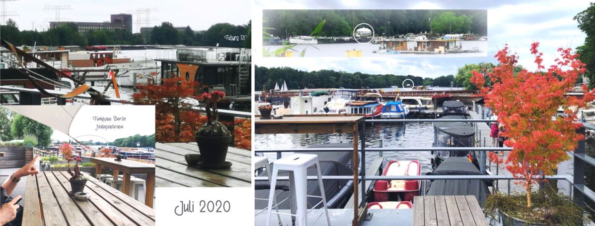 Das Funkhaus Berlin mal aus einer anderen Perspektive betrachtet. In dem Zusammenhang sei daran erinnert, dass daneben jahrelang eines der so genannten Futuro-Häuser stand, welches inzwischen auf einem Schiff ausgelagert als Futuro 13 darauf wartet, sorgfältig restauriert zu werden. In naher Zukunft wird es dann Instituten und Universitäten zu Forschungszwecken zur Verfügung stehen. Collage: © Elisabeth Heller im Juli 2020