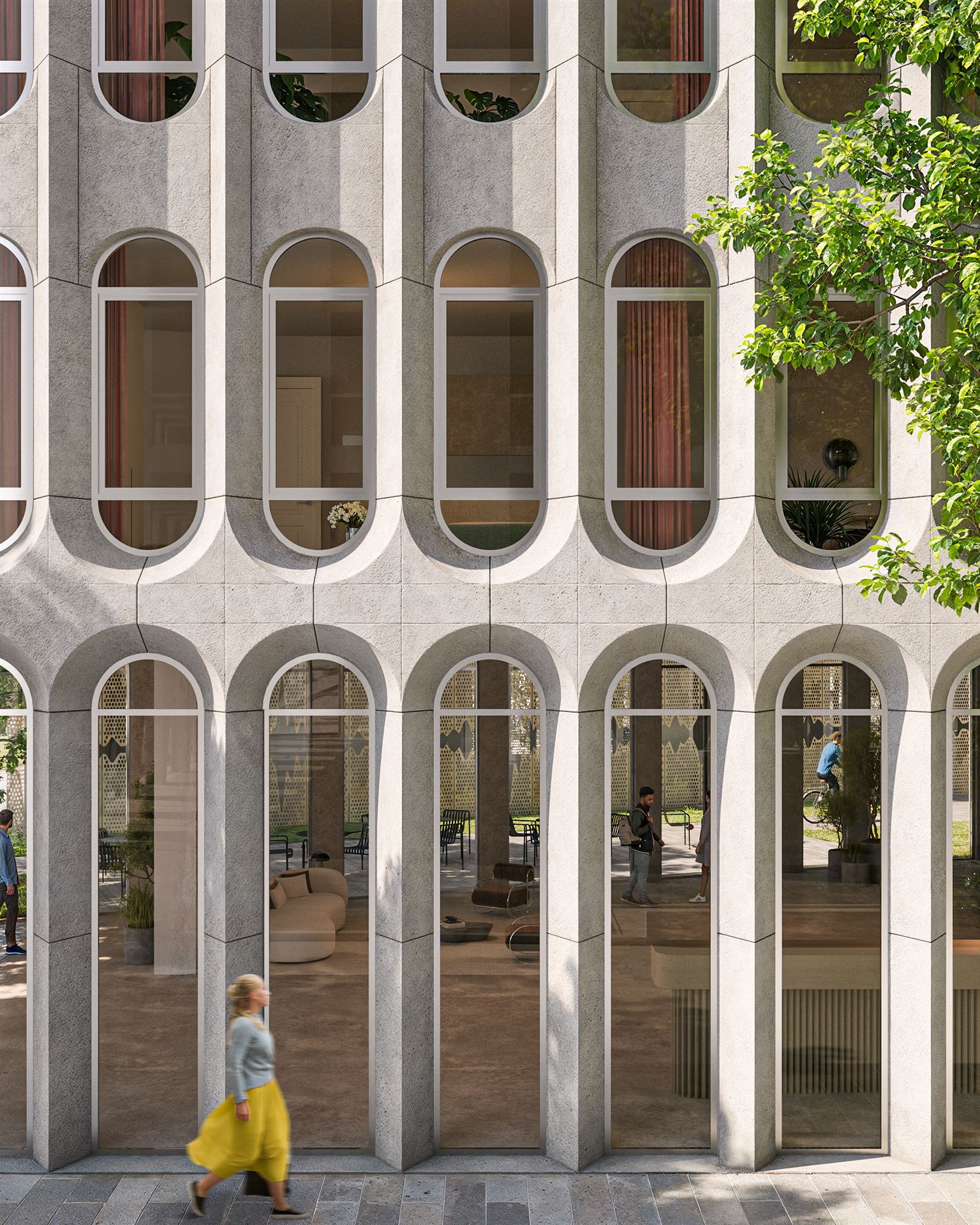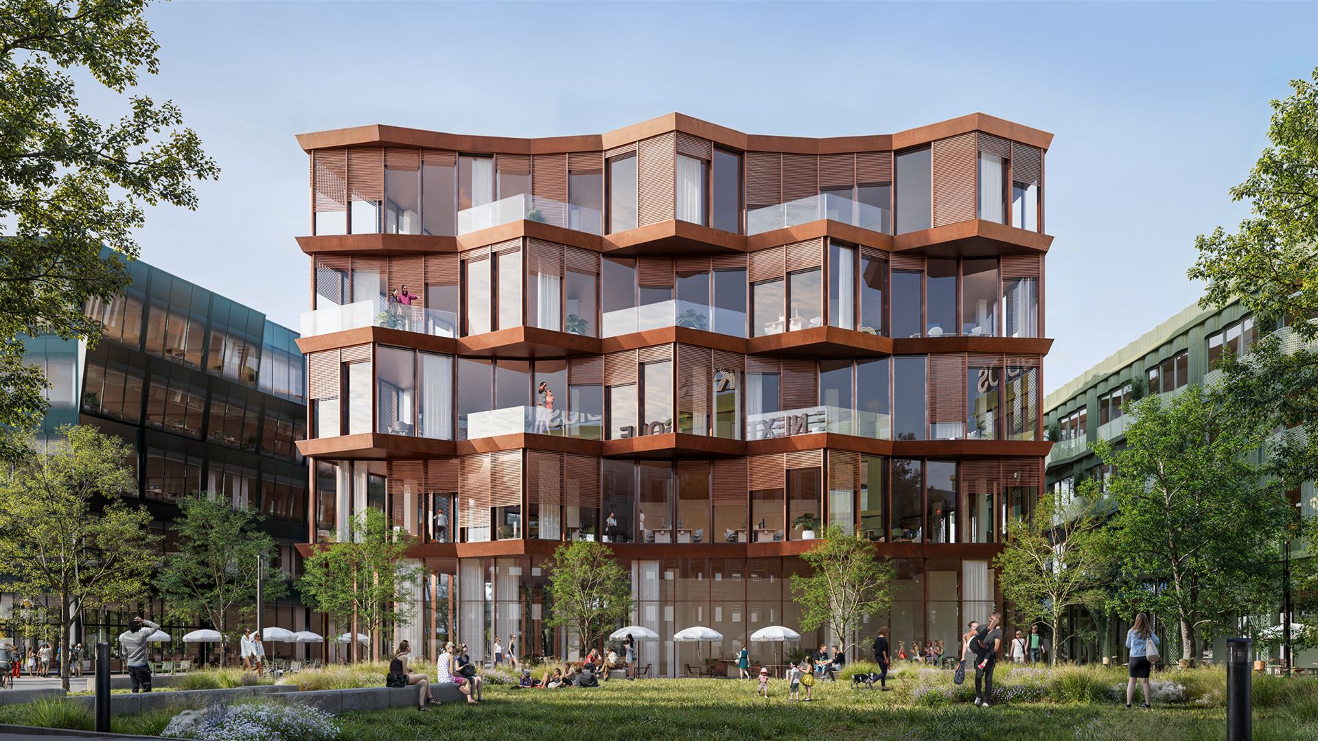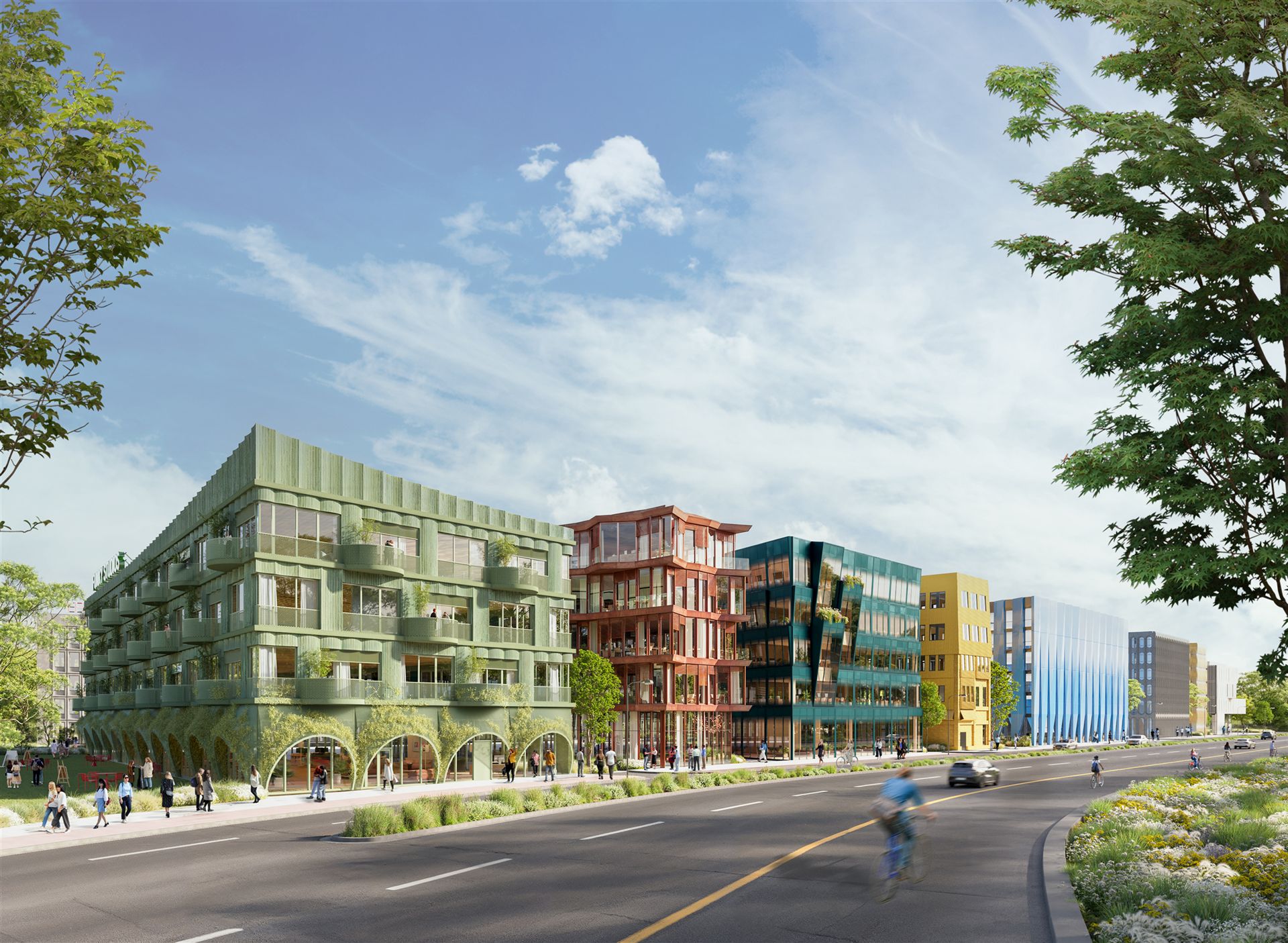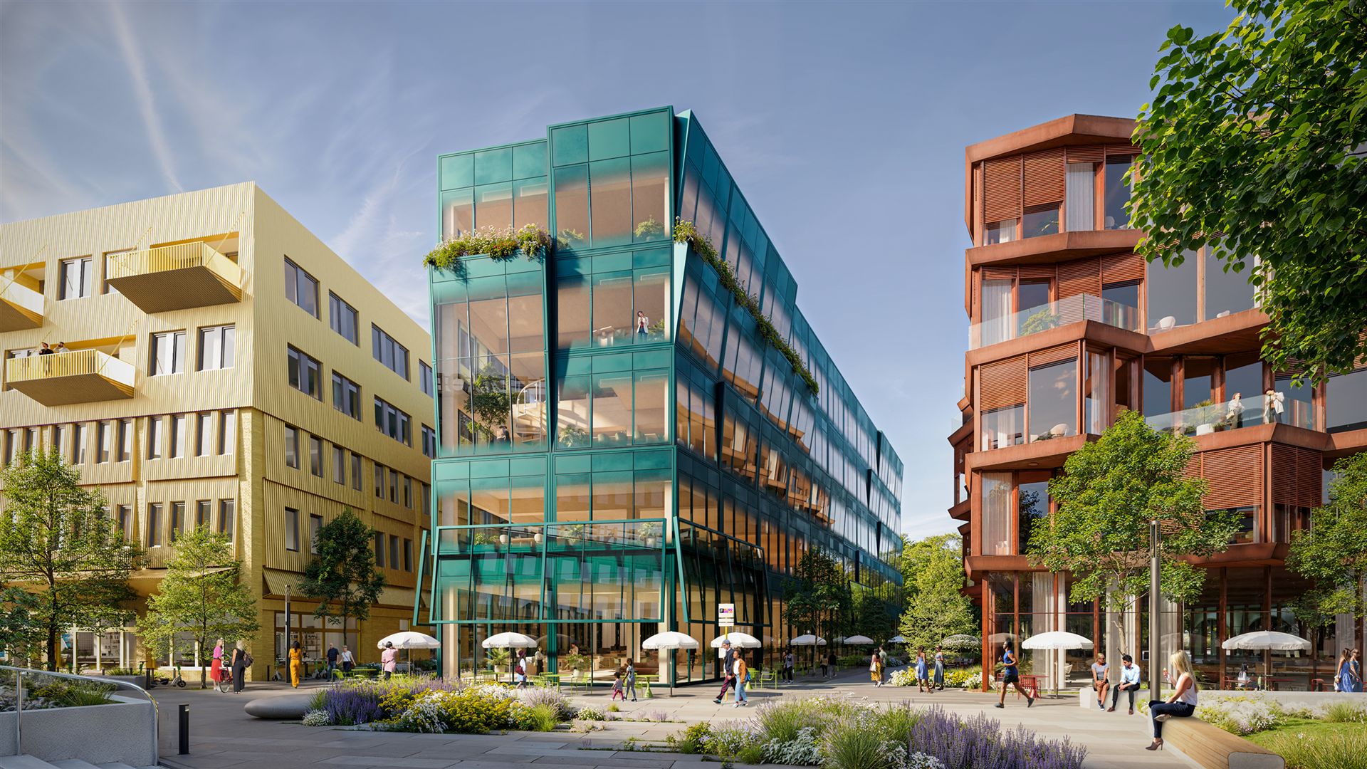 So nimmt nur wenige Schritte vom denkmalgeschützten Teil des Funkhauses entfernt das neue Kapitel zunehmend weiter mehr Gestalt an: Funkytown Berlin. Das geplante Quartier umfasst rund 50.000 m² und soll bis 2029 zu einem kreativen Campus mit Community-Charakter heranwachsen – als Nachbarschaft, in der Menschen, Räume, Natur und Ideen miteinander verbunden sind. Acht Berliner Architekturbüros (darunter Graft, Grüntuch Ernst, KSP Engel, LXSY, LAVA, Tchoban Voss, Julian Breinersdorfer und Hillig) haben erste Visualisierungen für die neuen Gebäude – die sogenannten „Stations“ A bis H – entworfen. Ergänzt wird der Campus durch das historische Bestandsgebäude Block-E, das derzeit von AIP Leipzig saniert wird. Schon jetzt ist rund die Hälfte der Flächen vermietet: Unter anderem werden The Base ein Co-Working-Angebot betreiben und Nena Hospitality eine komplette Station übernehmen. Zur Pressemeldung vom 19.9.2025 I Funkytown I Beiträge: Berliner Zeitung + Entwicklungsstadt