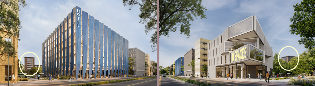 19. September 2025: Nur wenige Schritte vom noch denkmalgeschützten Teil des Funkhauses entfernt nimmt es weiter Gestalt an: Funkytown Berlin. Das geplante Quartier umfasst rund 50.000 m² und soll bis 2029 zu einem kreativen Campus mit Community-Charakter heranwachsen – als Nachbarschaft, in der Menschen, Räume, Natur und Ideen miteinander verbunden sind. Acht Berliner Architekturbüros (darunter Graft, Grüntuch Ernst, KSP Engel, LXSY, LAVA, Tchoban Voss, Julian Breinersdorfer und Hillig) haben erste Visualisierungen für die neuen Gebäude – die sogenannten „Stations“ A bis H – entworfen. Ergänzt wird der Campus durch das historische Bestandsgebäude Block-E, das derzeit von AIP Leipzig saniert wird. Schon jetzt ist rund die Hälfte der Flächen vermietet: Unter anderem werden The Base ein Co-Working-Angebot betreiben und Nena Hospitality eine komplette Station übernehmen. Weiterlesen und -schauen.