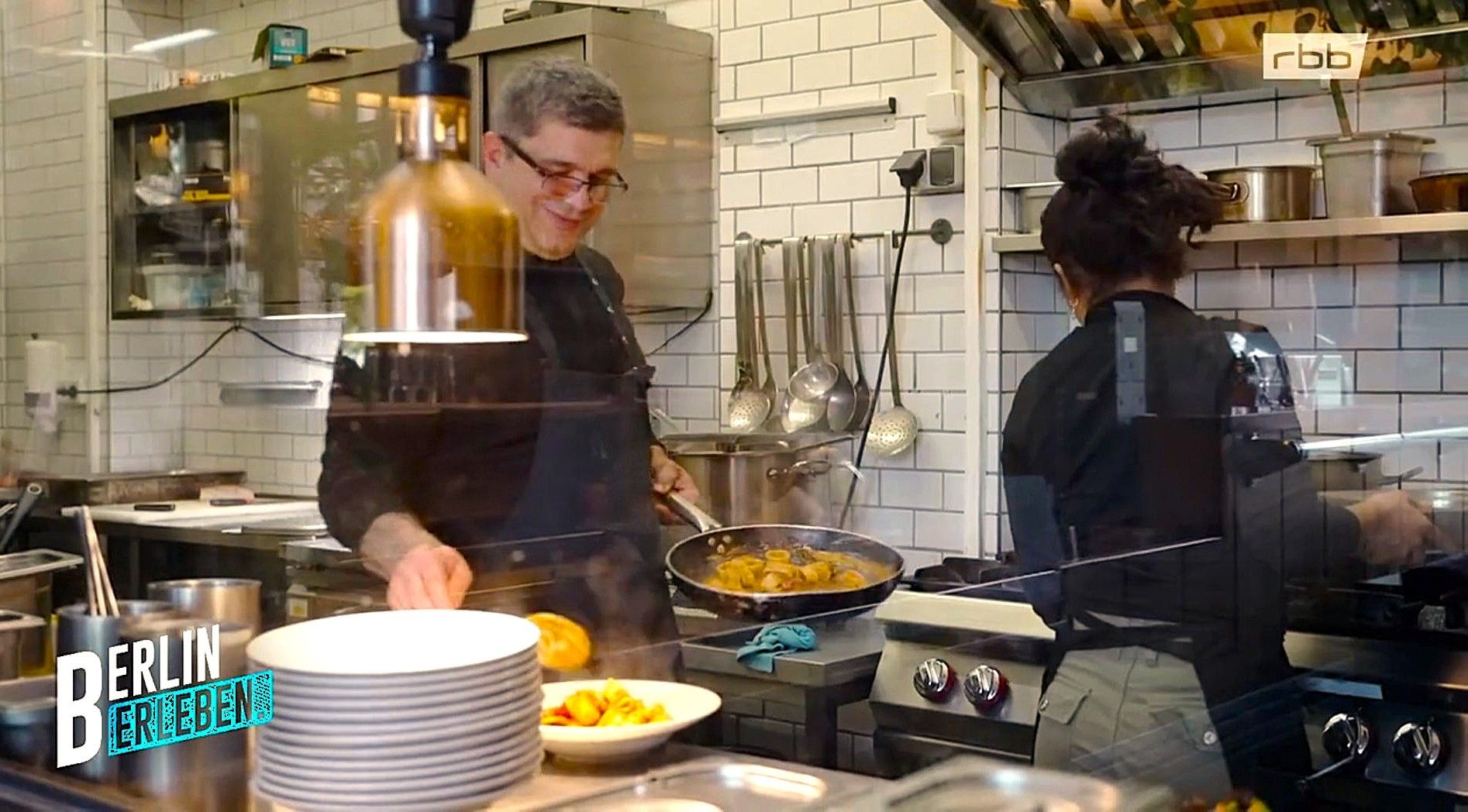 Und ein Besuch der Kultmilchbar dort lohnt immer. Denn mit Teilen ihrer Original-Einrichtung ist sie eine echte Zeitkapsel und ein beliebter Treffpunkt. Ob für ein gutes Mittagessen, einen Kaffee oder einfach nur, um das nostalgische Flair zu genießen. Abbild: Sreenshot aus dem rbb-Beitrag "Der Tag" ab Minuten 8:50 zu sehen der Küchenchef Nino in der Kult-Funkhausmilchbar