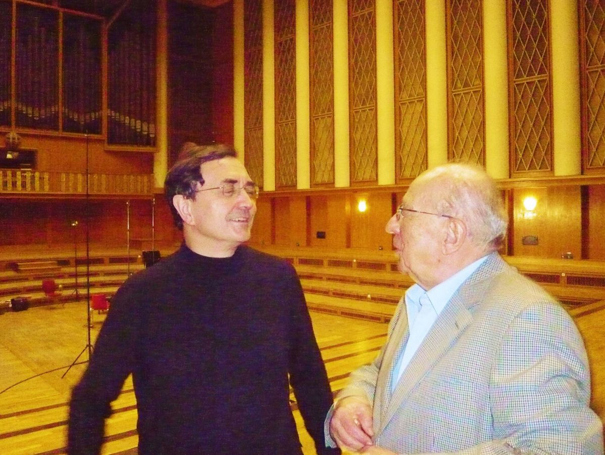 Privates Foto: Pierre Laurant Aimard im Frühjahr 2014 im Gespräch mit Gerhard Steinke* im Saal eins | Weitere Infos zu den Aufnahmen von Bachs "Wohltemperierte Klavier" bei KlassikAKZENTE